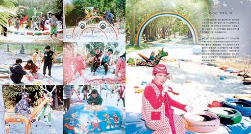 我們彩虹園那些石塑動物,有一些是我畫的(大眾鼓掌),最多顏色的動物就是我畫的。因為他們畫不夠顏色,他們太保守,畫一隻豬就真的像豬一樣(大眾笑)。我說我們這邊的豬跟外面的豬不一樣,我們這邊是天堂的豬、皇家的豬,應該給他們戴王冕、穿龍袍等等,怎麼畫得黑漆漆這樣!所以我自己就動手了,我說你們應該這樣畫、那樣畫,小孩才會喜歡。